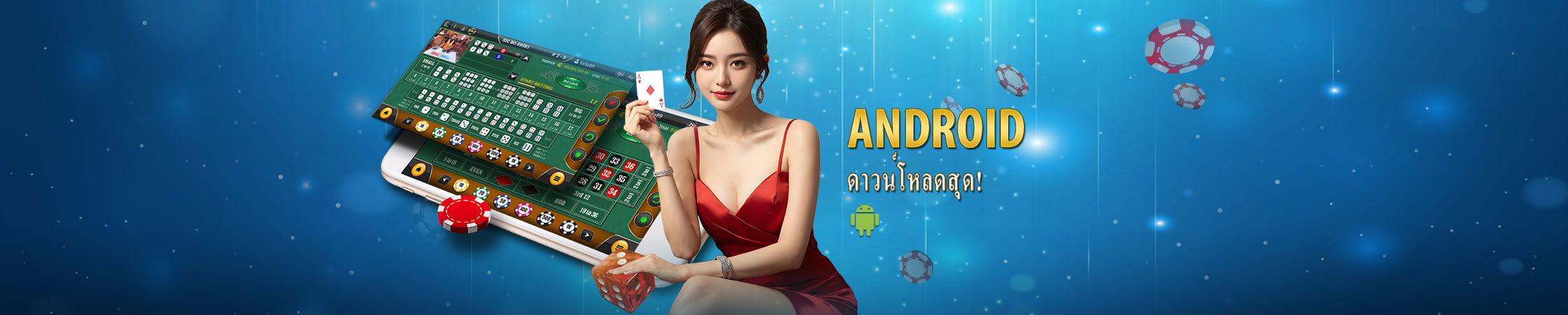 - ให้ท่านสัมผัสคาสิโนสดของเราง่ายๆบนมือถือของคุณ ให้ท่านมีประสบการณ์ได้พบกับ เจ้ามือสาวสวยและวิธีการแจกไพ่จริง ง่ายๆเพียงปลายนิ้วสัมผัสของคุณ!